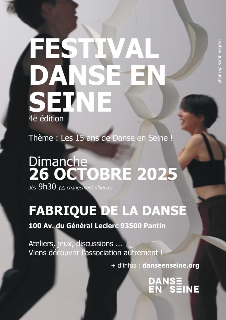 16h15 : DébatsPour nos quinze ans, il nous semble important de rediscuter de notre projet. L’association a évolué, elle est plus grande, plus diverse, encore plus hyperactive. Pour démarrer ce questionnement qui durera toute l’année, nous souhaitons commencer par discuter avec vous de ce que cela signifie concrètement, pour chacun.e d’entre nous, de faire de “la danse en amateur” et en quoi Danse en Seine y répond pour vous ou pas.